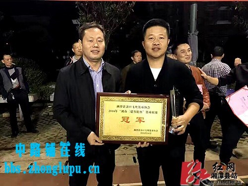 县领导周贤(左一)与冠军队获得者“三建智能”队代表合影。 洛口飞鹰2016年“湖南三建智能杯”篮球联赛经过37场赛事,历时1个月,11月4日晚在天易示范区篮球场圆满落下帷幕。县委常委、县政府党组副书记、常务副县长候选人周贤现场为球员鼓劲并为获奖代表队颁奖。