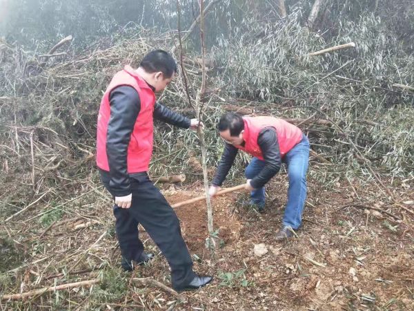 植树干部合影 王鑫书记栽种树苗 3月14日上午,为积极响应习近平总书记关于开展生态文明建设的要求,中路铺镇党委、政府组织全体党政负责人和中层干部来到晓霞山上参加春季义务植树活动,以实际行动倡导生态文明,守好一方山水,共建绿色家园。 山峦叠翠、层林尽染……3月晓霞山万物复苏,一派勃勃生机。多年来,中路铺镇广大党员干部积极投身生态建设,助力当地生态保护。在植树现场,人头攒动,到处是干部们植树的身影,呈现出一派热火朝天的植树场面。搬树、挖坑、扶苗、填土、提苗、灌溉、踩实,各司其职,有条不紊地认真完成每一个植树环节。 在活动中,两人一组,三人一伙,有人专门搬运树苗,有人专门负责栽树苗,整个植树现场一片忙碌。经过半个小时的连续奋战,党员干部们共种紫玉兰100多株,展示了中路铺镇党员干部的良好形象,用实际行动为晓霞山增添新绿。大家纷纷表示,参加这样的义务植树活动十分有意义,也让他们感到无比骄傲和自豪,在今后的工作中,要更加努力地投身到乡村振兴和环境保护的热潮中,努力为中路铺镇经济社会发展做出新的贡献。