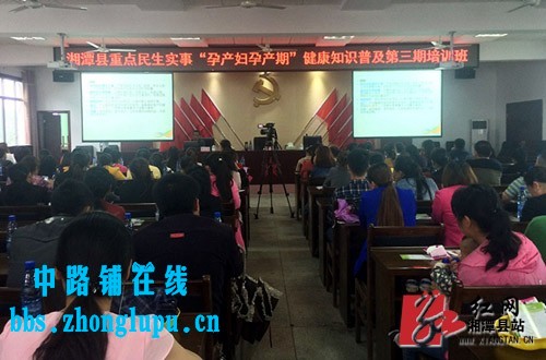 培训现场 为了将重点民生实事落实在最基层,进一步普及围生期保健知识及科学育儿知识,5月25日,由湘潭县卫计局主办、中路铺镇承办的“湘潭县重点民生实事‘孕产妇孕产期’健康知识普及第三期培训班”在中路铺镇开讲,中路铺镇共200余名孕产妇及家属参加,培训班由县卫计局相关负责人担任主持人,并邀请了县妇幼保健院和县人民医院的医生担任主讲老师。
