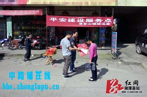工作人员向路过的群众发放宣传资料