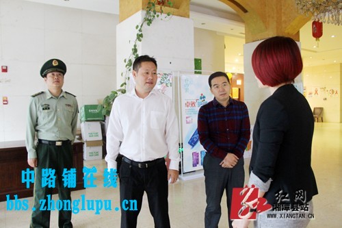 周贤(中)在亿格电器检查。 红网湘潭县分站10月19日讯(记者 彭圆)为了能够及时发现和消除安全事故隐患,做好省级安全生产示范县迎检之前的安全生产工作。10月19日上午,县委常委、县政府党组副书记、常务副县长候选人周贤率领县安监局、县公安消防大队、县商务粮食局等负责人一行对县城宾馆、酒店、商场等人员密集地进行安全生产检查,并对安全生产工作提出具体要求。